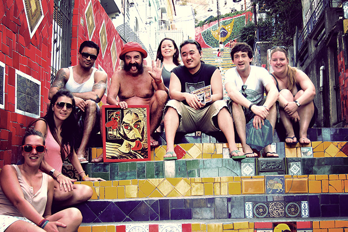 Sitting next to Selarón on his world-famous steps